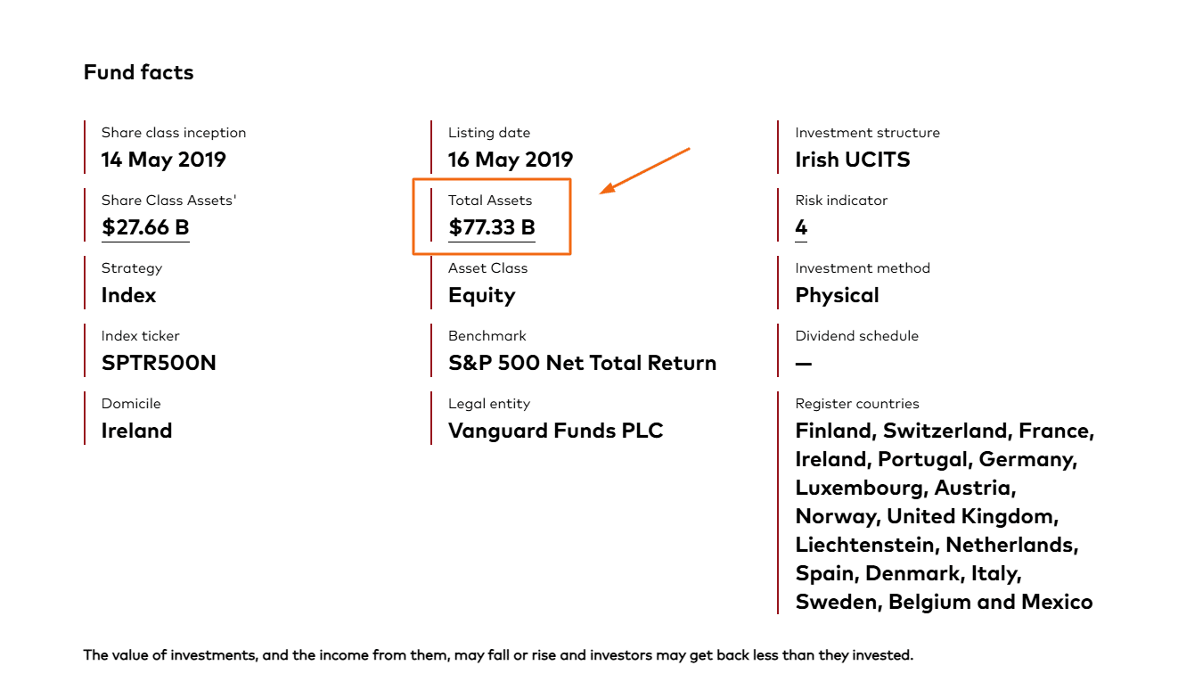 Taking the Vanguard S&P 500 UCITS ETF (VUAA) fact sheet as an example, you can verify the OCF is 0.07%, which helps keep costs low and can result in higher net returns over time: