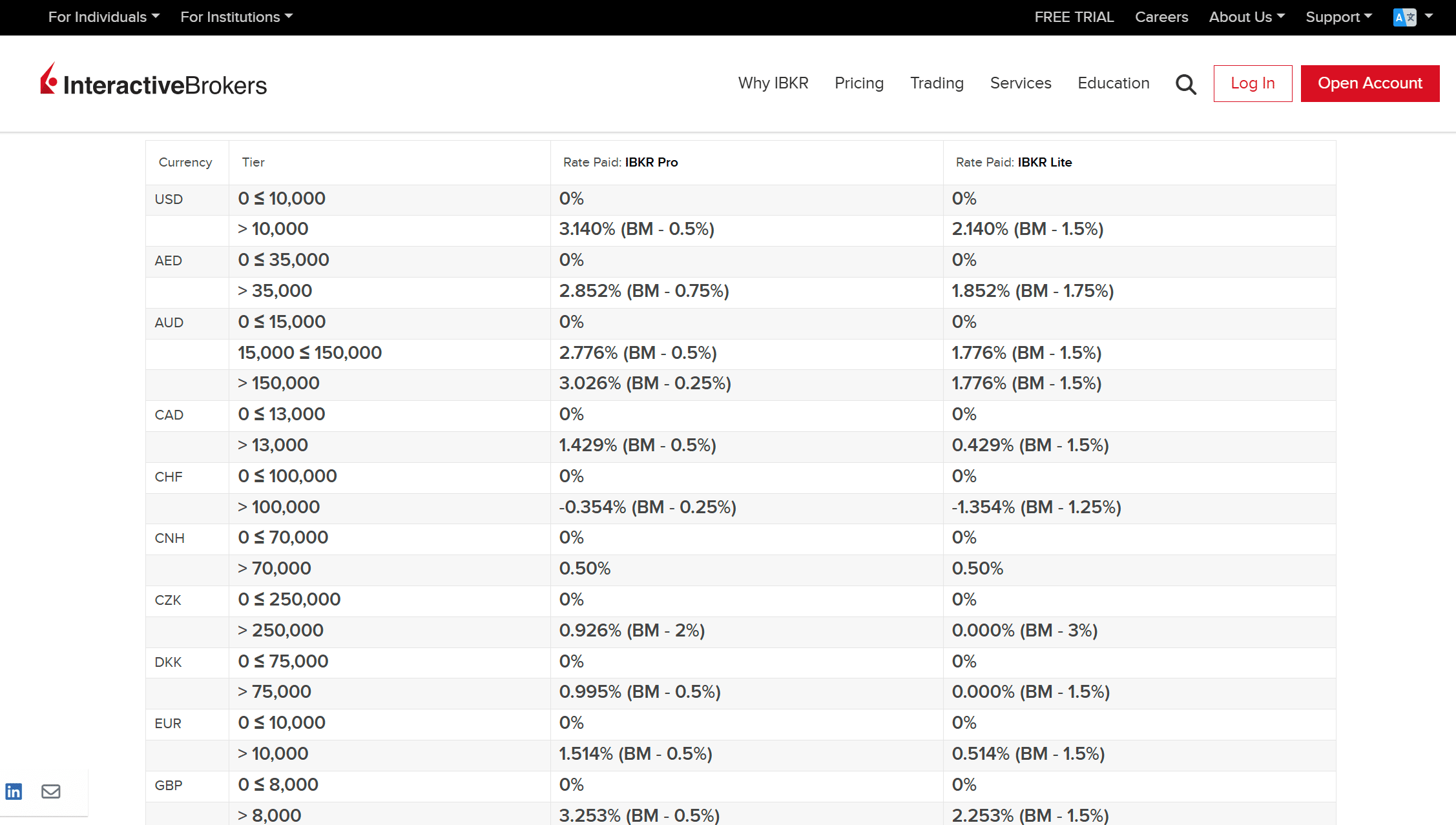 IBKR offers interest on uninvested cash in client accounts. It may vary between regions, but the overall rates are the following: