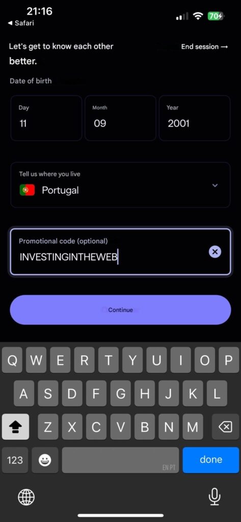 If you’re an investor in any of Lightyear-supported countries and you are interested in opening a Lightyear account, simply follow this link. Once on the Lightyear website, you can sign up for the mobile app, deposit £/€100 and enter the following promo code: INVESTINGINTHEWEB.