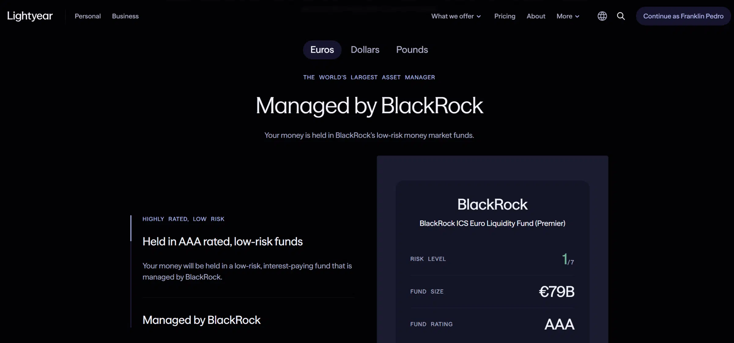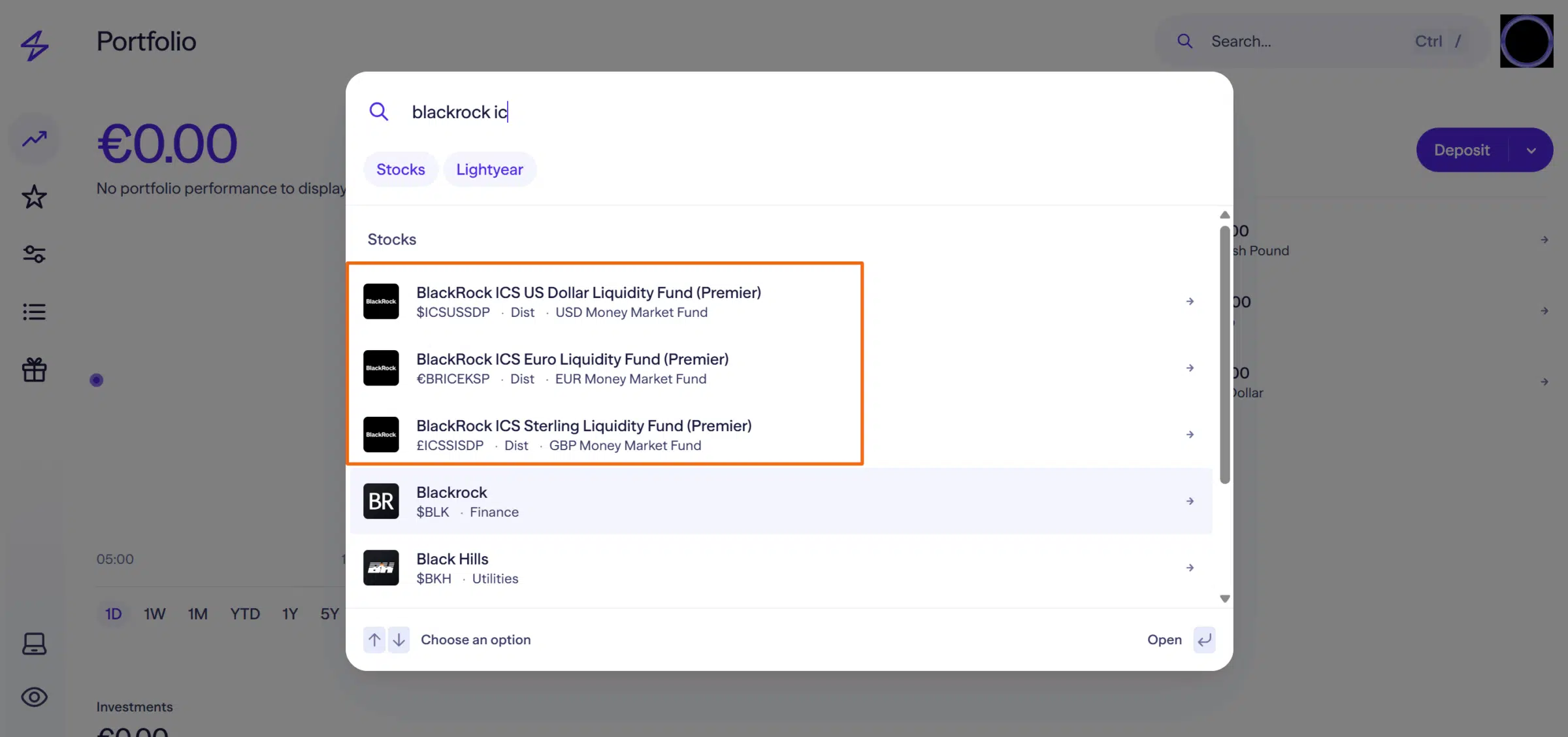 The MMF used by Lightyear for EUR cash is the BlackRock ICS Euro Liquidity Fund: