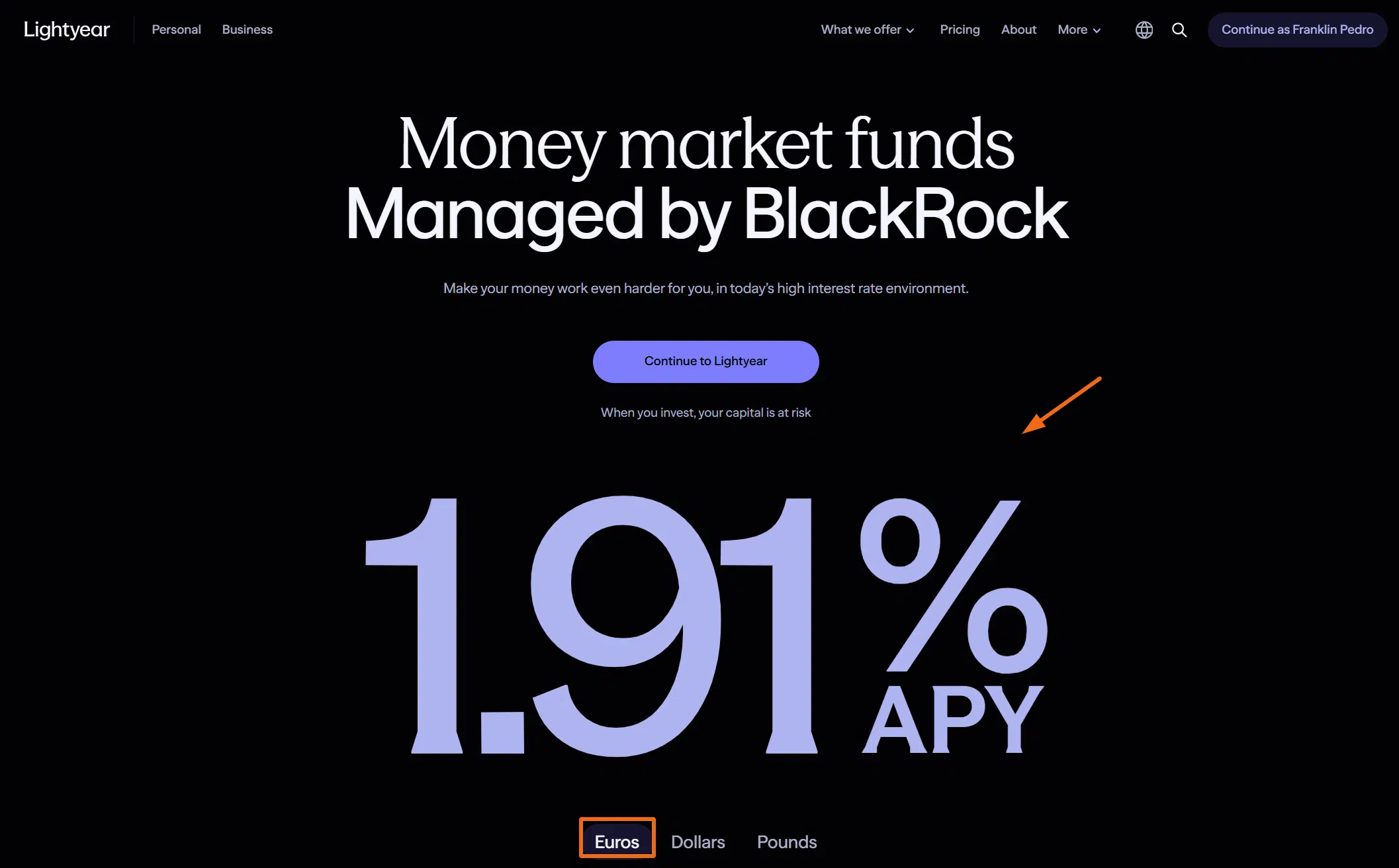 “Lightyear Savings offers you to invest in money market funds (MMFs). It is available in Austria, Denmark, Estonia, Finland, France, Germany, Hungary, Italy, Latvia, Lithuania (EUR only), Luxembourg, Netherlands, Spain, Sweden and the UK – countries where these funds are registered locally by BlackRock. If available, you can see Savings in your Portfolio tab.”