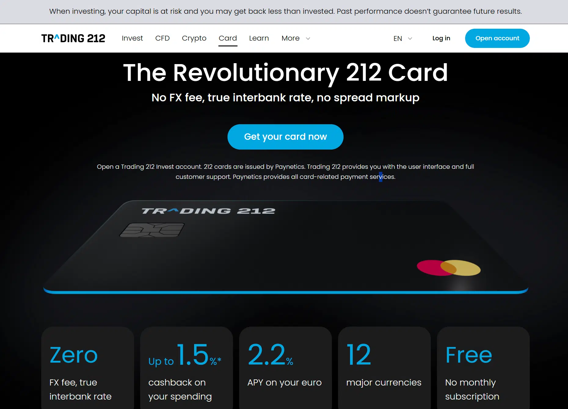 Disclaimer: Card distributed by Trading 212, issued and provided by Paynetics (UK). Available with an Invest Account.