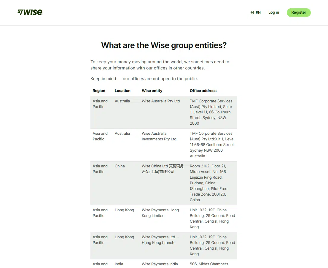 Yes, it must participate in the CRS Reporting since it operates through several countries which adheres to the CRS reporting. So, all of Wise’s subsidiaries are subject to it, as shown in their own website: