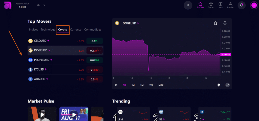 - It gives you access to the Crypto Autoinvest plan: Put your crypto investments on autopilot. Choose from top cryptos like BTC, ETH, and DOGE, or build your own plan.