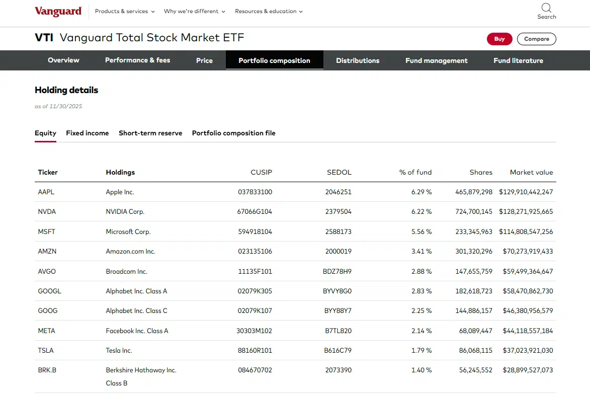 As one of Vanguard’s flagship funds, VTI has gained popularity and has become one of the largest and most widely held ETFs. Investors are drawn to VTI due to its broad-based approach to market coverage and its ability to provide exposure to the entire U.S. stock market. Keep in mind that approximately 82% of this index overlaps with VOO.