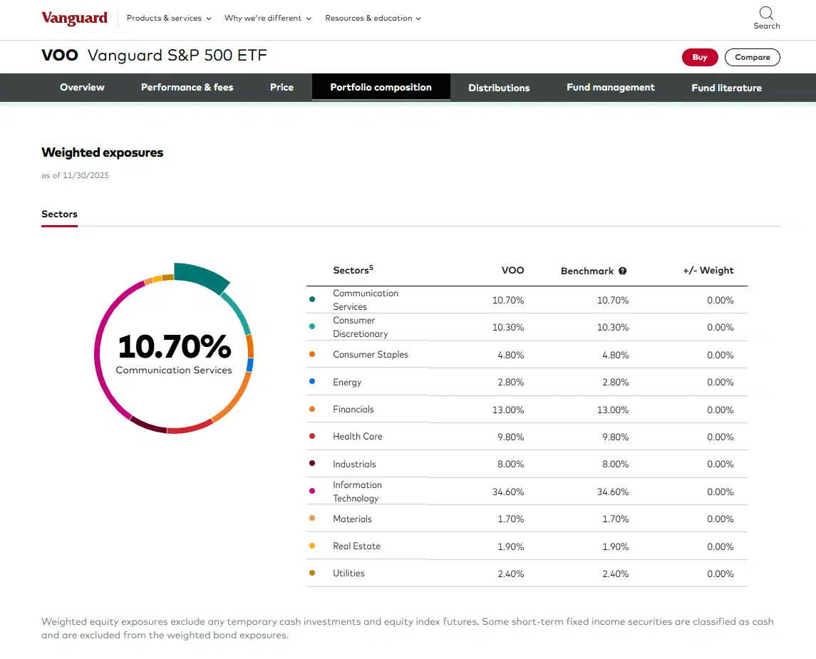 Sector allocation VOO