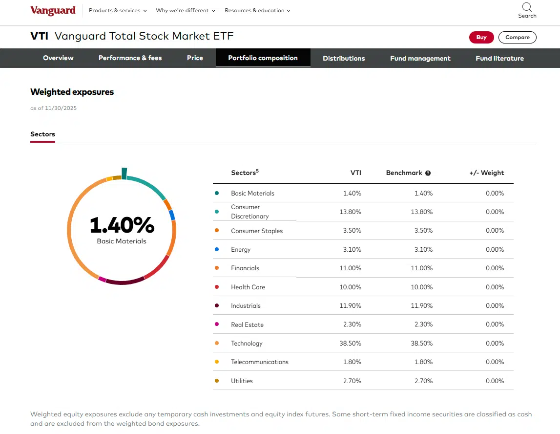 Sector allocation VTI