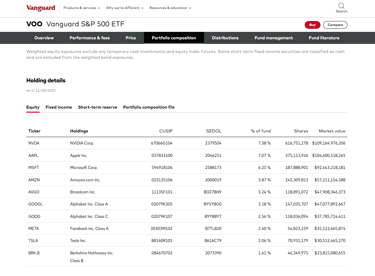 Top 10 Holdings VOO